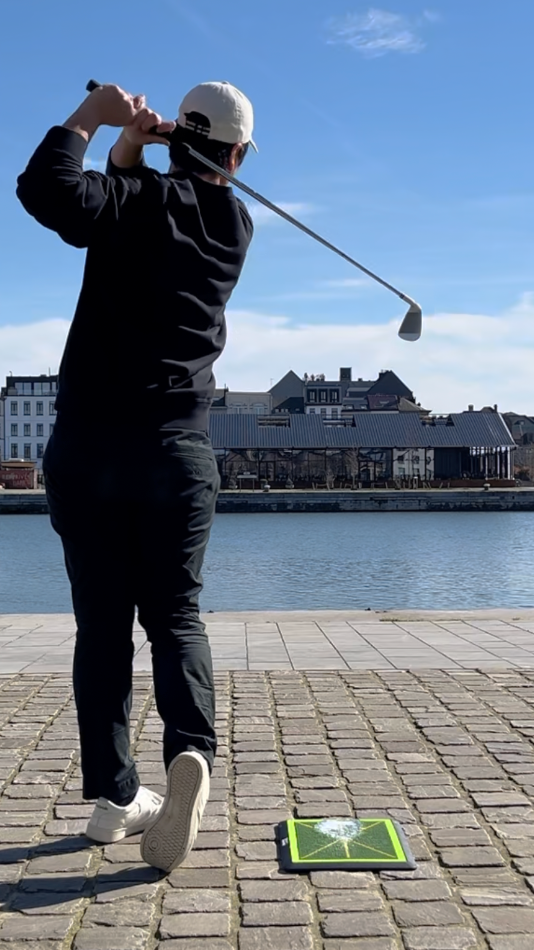 - Indoor Use: Simply place the mat on any flat surface and press the surface to the ground. The rubber base is engineered for maximum friction and suction, ensuring the mat stays in place during your swing.